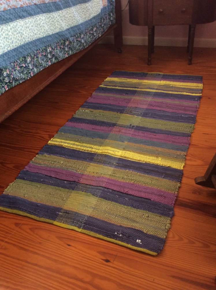 And here is the finished rug, at home next to the guest bed. I think it works. Mission accomplished.
