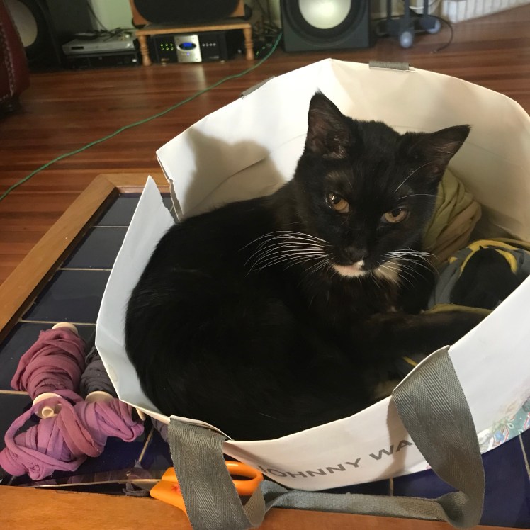 The bobbins were wound by hand while watching TV, and luckily I had help. That’s Lucky (first half of LuckyXena – I’ll introduce you to the late, great Xena another time).