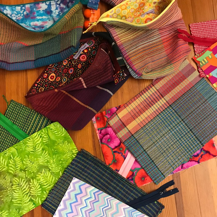 Some zipper bags from handwoven fabric (some still under construction).