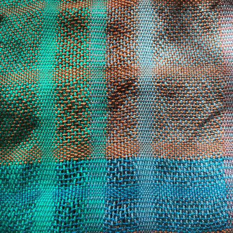 A super-wooly scarf made with mohair, alpaca, and a yak-silk blend. (Note to self – no more mohair singles as warp!)