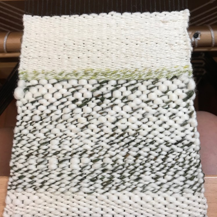 I combined the Harrisville and hand-spun and made more designs and faster progress.