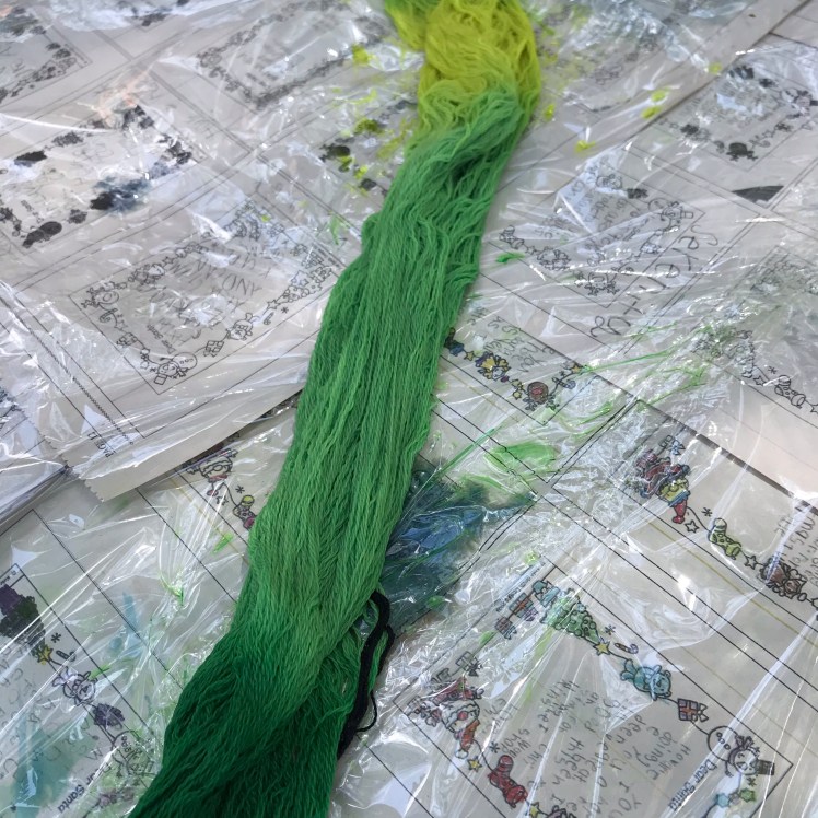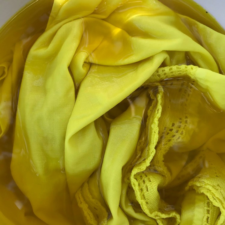 I dyed three cotton warps, two skeins of chenille, and some fabric pieces.