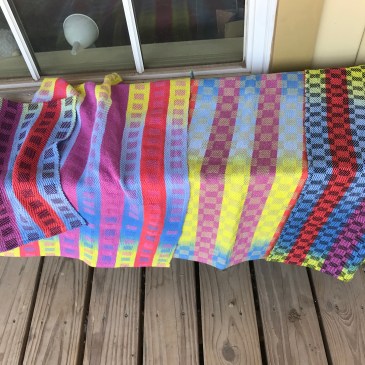 In May, I finally took a class from the wonderful Kathrin Weber of Blazing Shuttles at my favorite yarn store, Yarnorama, in Paige, Texas. What a combination of heavenly company and brain-bursting learning! We spent three days learning Kathrin’s method of combining hand-dyed warps and different weaving methods to make amazing cloth, then an additional day … More New Weaving Adventures